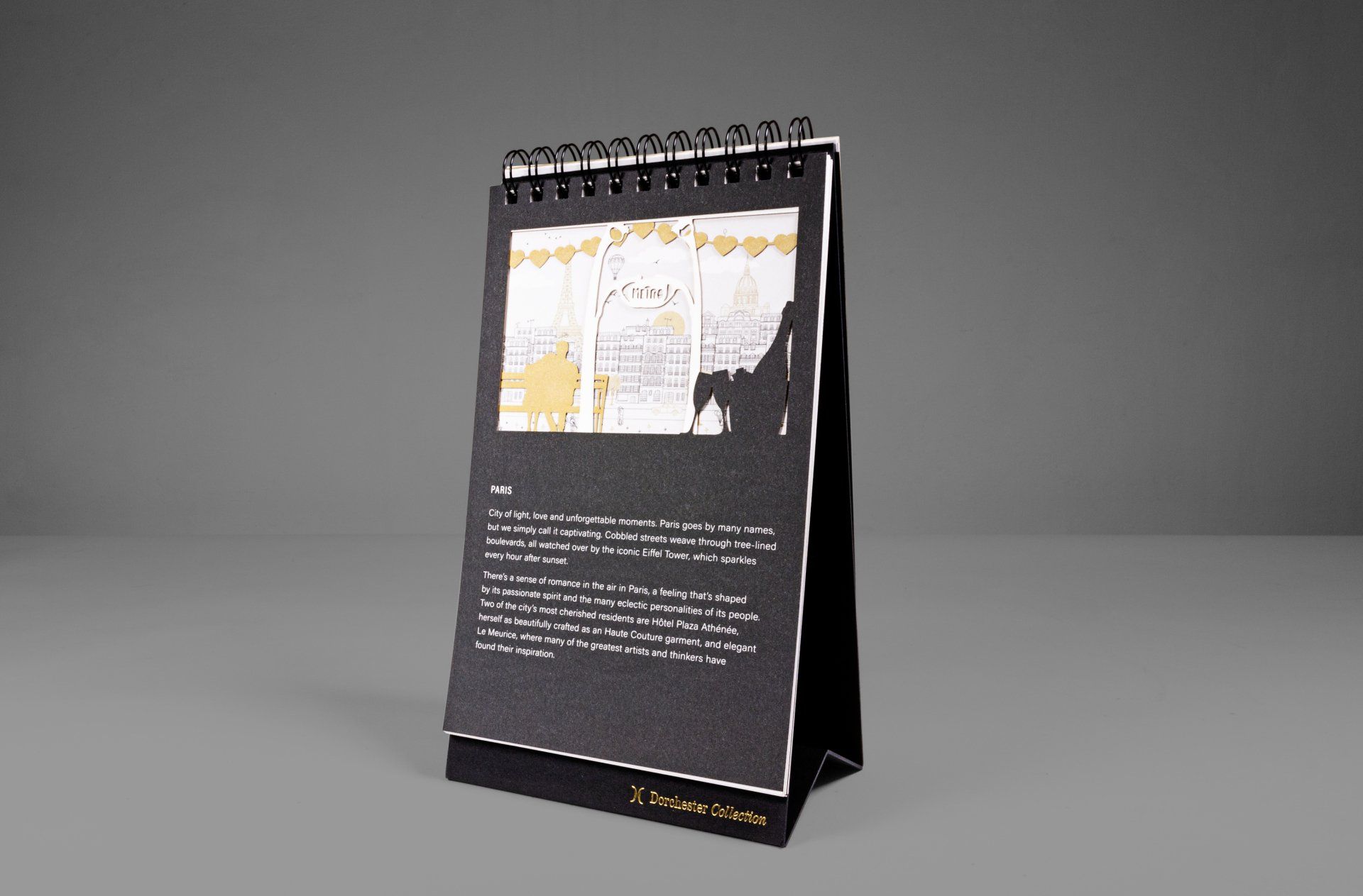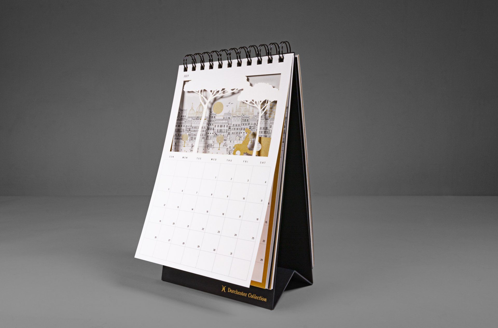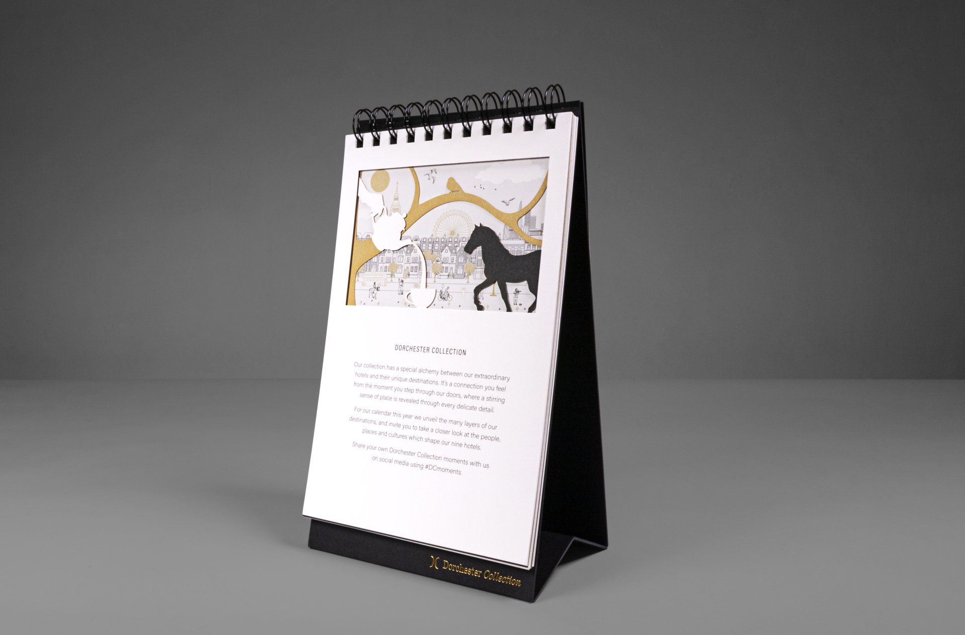 The Dorchester annual calendar is always exciting to print, and this year was no exception. From its use of gold foiling throughout to its standout series of multi-layered die-cut apertures, this piece delivered the wow factor across all levels.